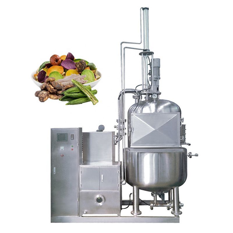 Vacuum oil frying (VF) technology is a process that dehydrates food products at low temperatures and a vacuum pressure below or equal to -0.09Mpa. This technology is different from deep frying in a normal atmosphere at high temperatures. The food processed by VF technology is delicious and has high added value since it well maintains its natural flavor and nutrition.