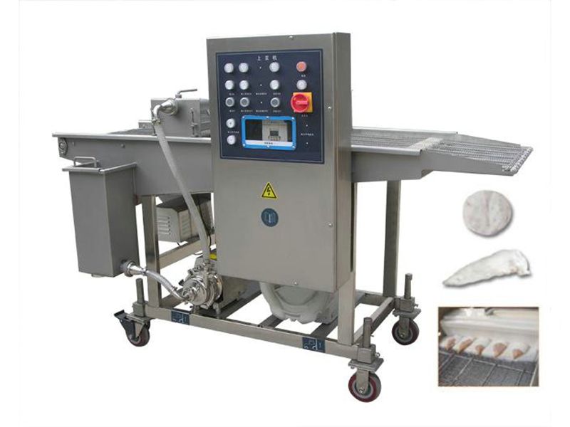 LTBM series battering machine can starch for meat, such as chicken, beef, pork and seafood such as fish, prawn, shrimp, etc.. The battered food can be fried directly or coated with some bread crumbs to get better taste. So, the automatic battering machine can also be used in combination with food fryers to form a food processing line.