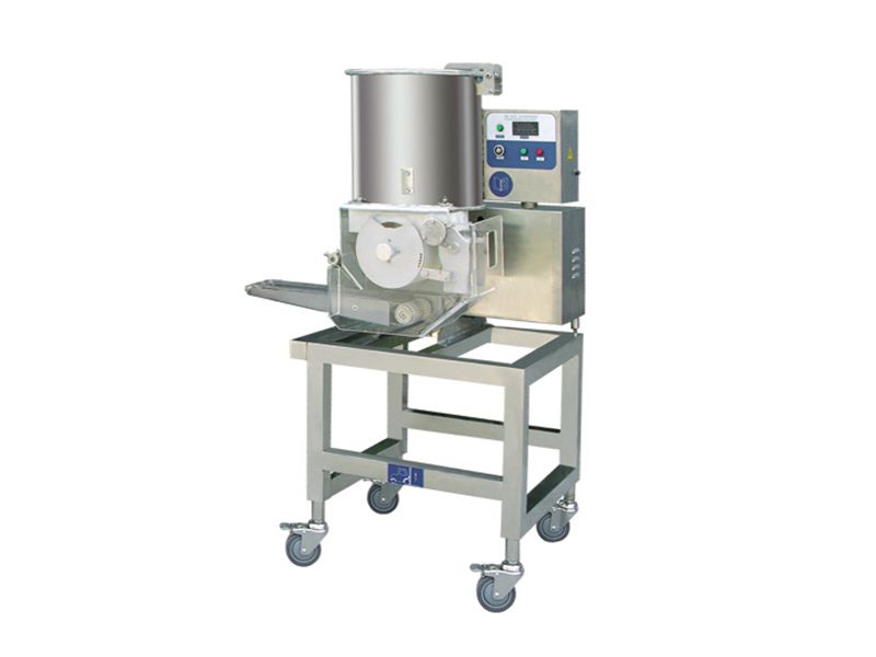 Automatic multifunction forming machine performs various procedures such as meat filling, forming and outputting automatically. It can also be used in combination with preduster, fryer, cooker, instant freezer and packing machine, etc. to form a complete ready-to-eat food production line. In order to ensure precise food forming, this meat forming machine is designed with a four-screw feeding system.