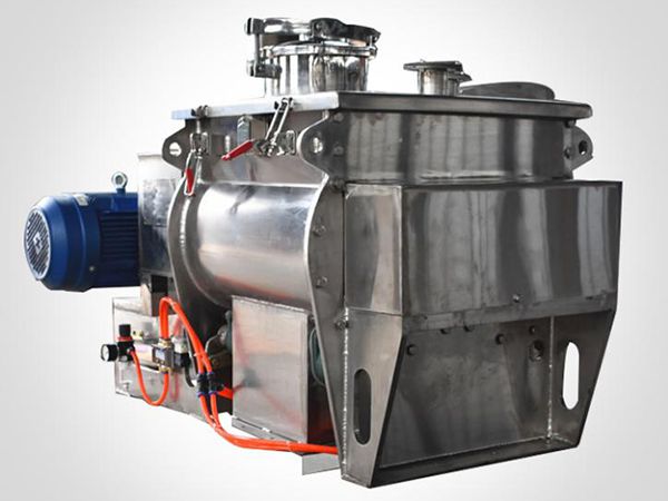 The double shaft paddle mixer consists of a W-shaped mixing vessel, a top cover with an optional opening, two shafts with paddles, a transmission system, a support structure, seals and a discharging unit. Because that the two shafts rotate in opposite directions, the paddles on each shaft can stir the materials in a certain angle along the axial and radial directions therefore enabling the materials to be evenly mixed. The upward flowing of materials generates a zone of weightlessness, so this double shaft paddle mixer is also known as zero-gravity mixer.